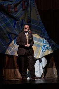 Any 20th century murder manor needs a seductress, and this one’s was played by Ruth Pferdehirt as Sandra Wilkinson/Florence Colleymoore. And what would a British manor be without a dutiful butler? Eric Santagata was a brilliant Perkins/Dennis Tyde and remained crisply in character despite the madness happening around him. Other leads included Jordan Sobel as Cecil Haversham/Arthur the Gardener and Kristen Wyatt as Annie Twilloil, a poor stage hand who gets pulled into the madness and performs her entire role on book to limited success.