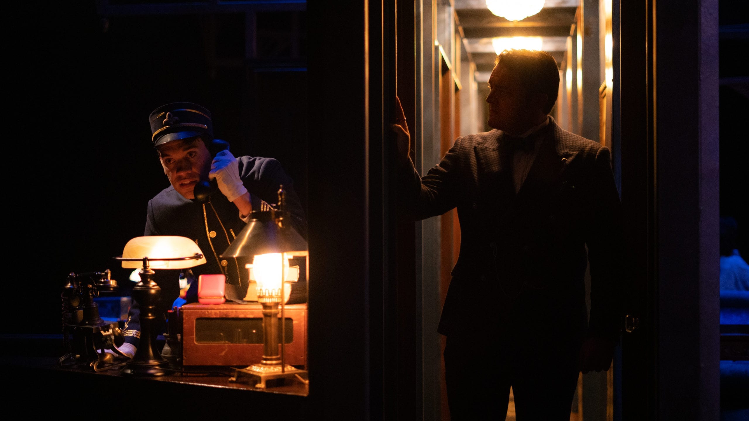 Barta Heiner directed wonderfully, and I loved the quick pace of the show. The two hours fly by like only a few minutes, and by the end I wished for more. I loved how the characters moved through the dining hall as if it were more crowded and cramped than it appeared. As the set (designed by Madeline Ashton) moved on a turntable, I was delighted to see characters going from one compartment of the train through the central hallway to their individual rooms, or clamoring around in terror after a fright. It was clever the way the three first private rooms were used for the action, while the dining compartment was for discussion and secret meetings. The train looked beautiful, with blue embroidered cushioned love seats in the dining car.