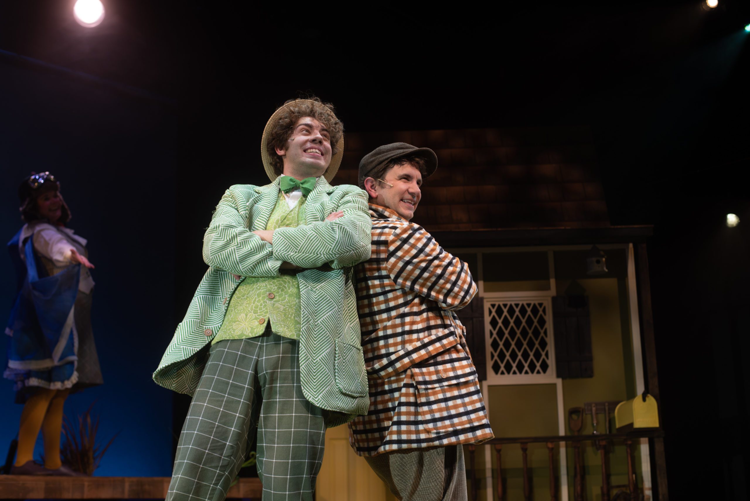The Parker Theatre is located off of state street in south Salt Lake in an area that does not scream “arts and culture.” It is a venue that would be easy to overlook, and I was not sure what to expect going in. Upon seeing the stage, I was immediately taken with the enchanting set designed by James B. Parker. TYA engages through vivid color and detail, as well as through simple and playful convection. Parker’s set consists of two large houses that swivel to show the interior and exterior of Frog and Toad’s houses, as well as a large multipurpose platform in the middle that serves as various locations that Frog and Toad visit, and the spaces were beautiful built and full of details that were fun to look at without being distracting.