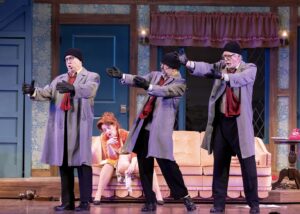As on-stage director Lloyd Dallas, Robert Mammana is especially charismatic. His determination to “keep calm and carry on” gives him an aloof, almost professorial air at first, which gradually unravels as he succumbs to the madness. Linda Muggleston continues to impress with her fearless comedy as Dotty—her timing and physicality are deeply funny. I’d see her in anything. Rhett Guter’s Garry is also brilliant. His use of what can only be described as an emotional support chapstick is one of the most unhinged and delightful choices I’ve seen on stage in years. His fall down the stairs in act three is unbelievable.