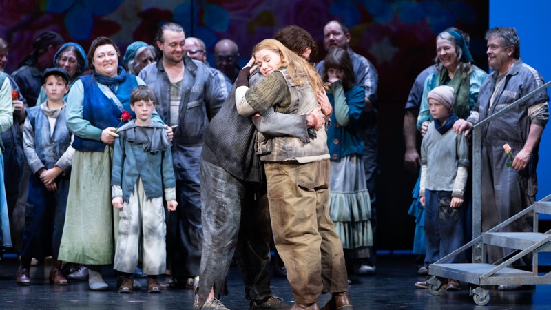 Utah Opera’s new production of FIDELIO is superb, from its brutalist sets echoing the worst gulags, to its proletariat costumes that seem right out of Joseph Stalin’s closet—masterfully and finely constructed by costume designer Fan Zhang—to the lush voices that turn the brutalism into sheer joy. The structure of the opera itself is surprising. In 1805 the music world was just coming out of the classical era into the romantic, and the opera reflects that transition. Set in an oppressive prison with a tyrant as it’s commandant, act I, scene 1, is light and almost comedic, reminiscent of Mozart or Rossini. Then, act I, scene 2, introduces us to the inmates of the prison, unjustly and cruelly treated. The tone changes and becomes darker. We see in the prisoners’—who have been allowed outside for just a moment to see the sun and breathe the fresh air—misery and pain as they long for freedom. Then in act II, scene 1, we dive into the bowels of the prison, the deepest, darkest region, where Leonore’s husband, Floristan, has been banished and forgotten. All lightness and hope are gone. We are like Orpheus descending into hell. In act II, scene 2 we emerge back into the light, and love has triumphed.
