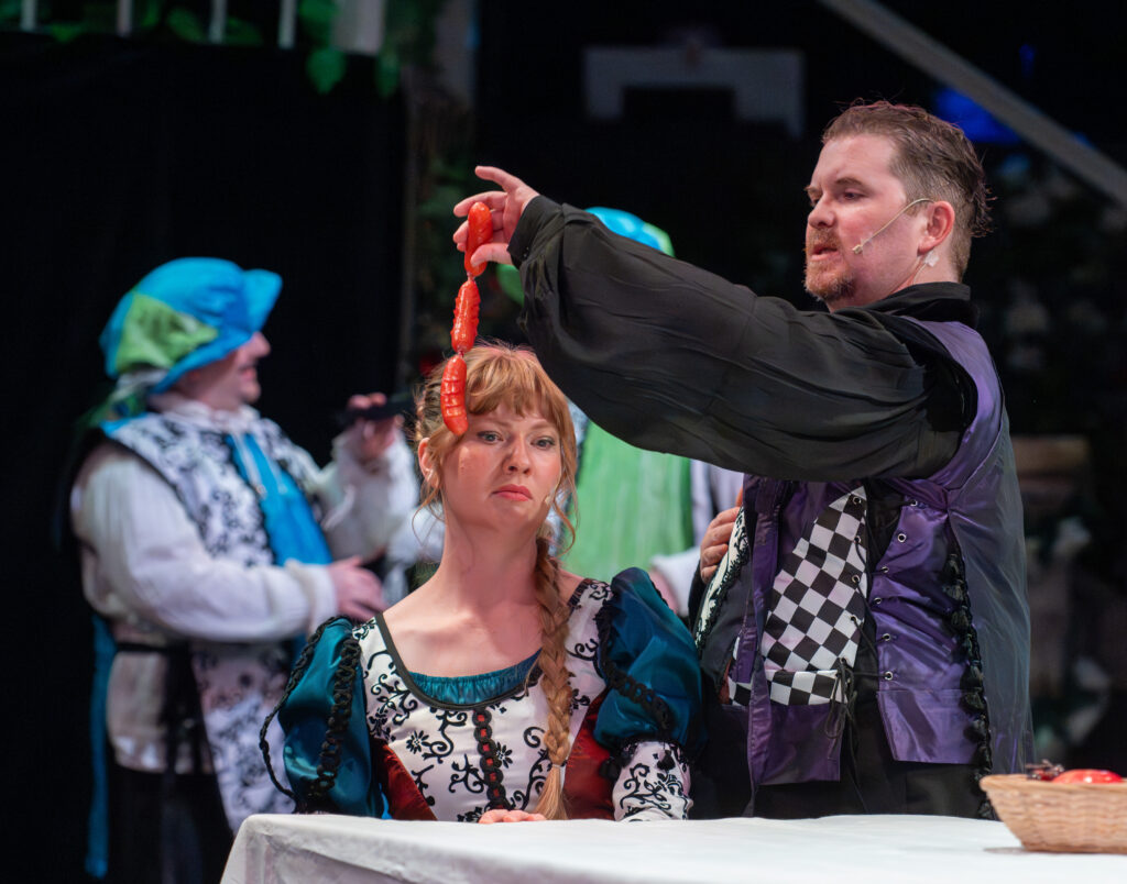 Another cast standout is found in Harry/Baptista, played by Jason Buck, whose portrayal of Katherine’s and Bianca’s father in Taming of the Shrew was a perfect combination of funny and fraught.