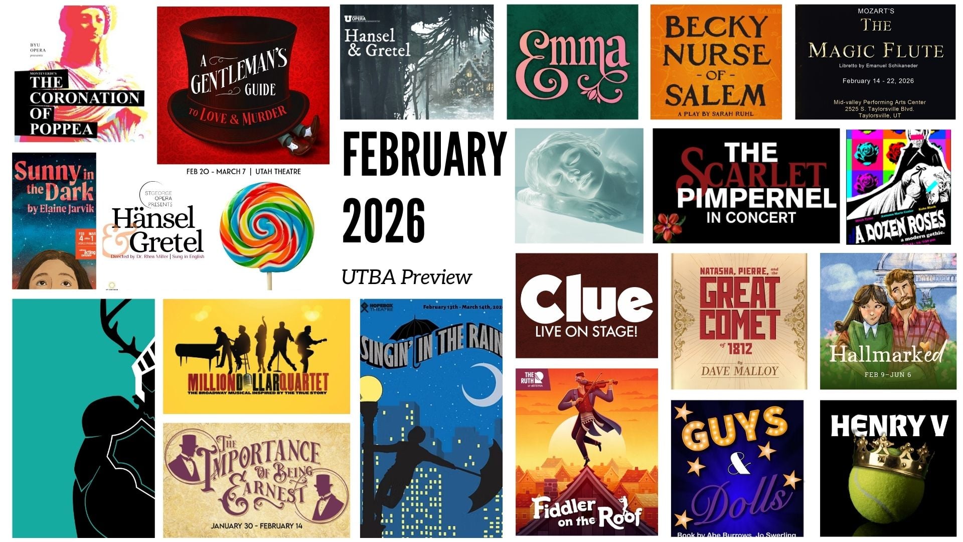 After a slow roll into productions for the year in January, February is filling stages statewide with a myriad of great theatrical options. Everything from golden age musicals, new works, staged readings, operas, contemporary shows, and even theatre for the very young. Options come in from the budget friendly to the highly spectacular and there are new shows everywhere from Logan to St. George. If you want to laugh, sing, or have your heart swoon with romance as love is in the air and snow may someday reach the ground of the valleys, take an evening (or 28!) and see what’s gracing Utah’s stages this month!