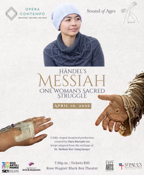 Opera Contempo’s production of Messiah: One Woman’s Sacred Struggle performs at the Rose Wagner Performing Arts Center (138 Broadway, Salt Lake City, UT) in the Leona Wagner Black Box Theatre April 10, 2026 at 7:30 PM. Tickets are $36.50. For more information, go to operacontempo.com.